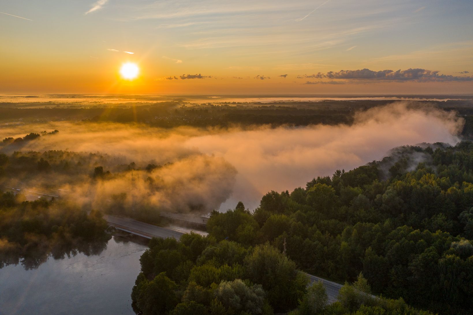 рассвет, восход, туман, мост, река, озеро, Баландин Дмитрий