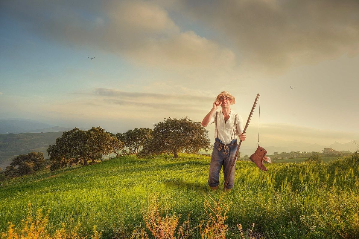 поле, облака, мужчина, Sergii Vidov