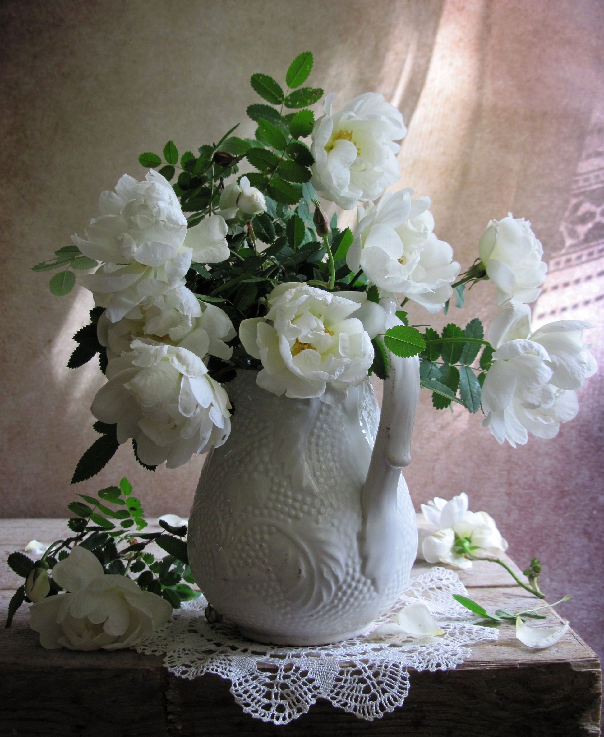 цветы, букет, розы, кувшин, винтаж, салфетка, белый цвет, Наталия Тихомирова