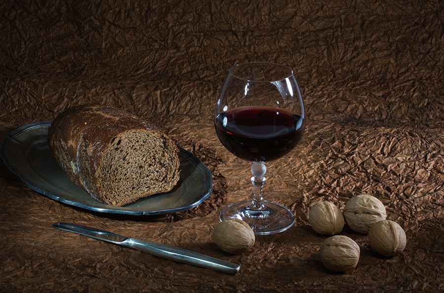 грецкиеорехи вино хлеб натюрморт, Бекетова Ольга