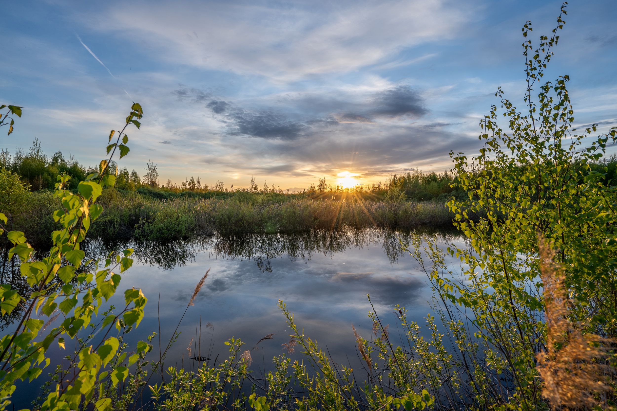 закат, солнце, отражение, облака, Баландин Дмитрий