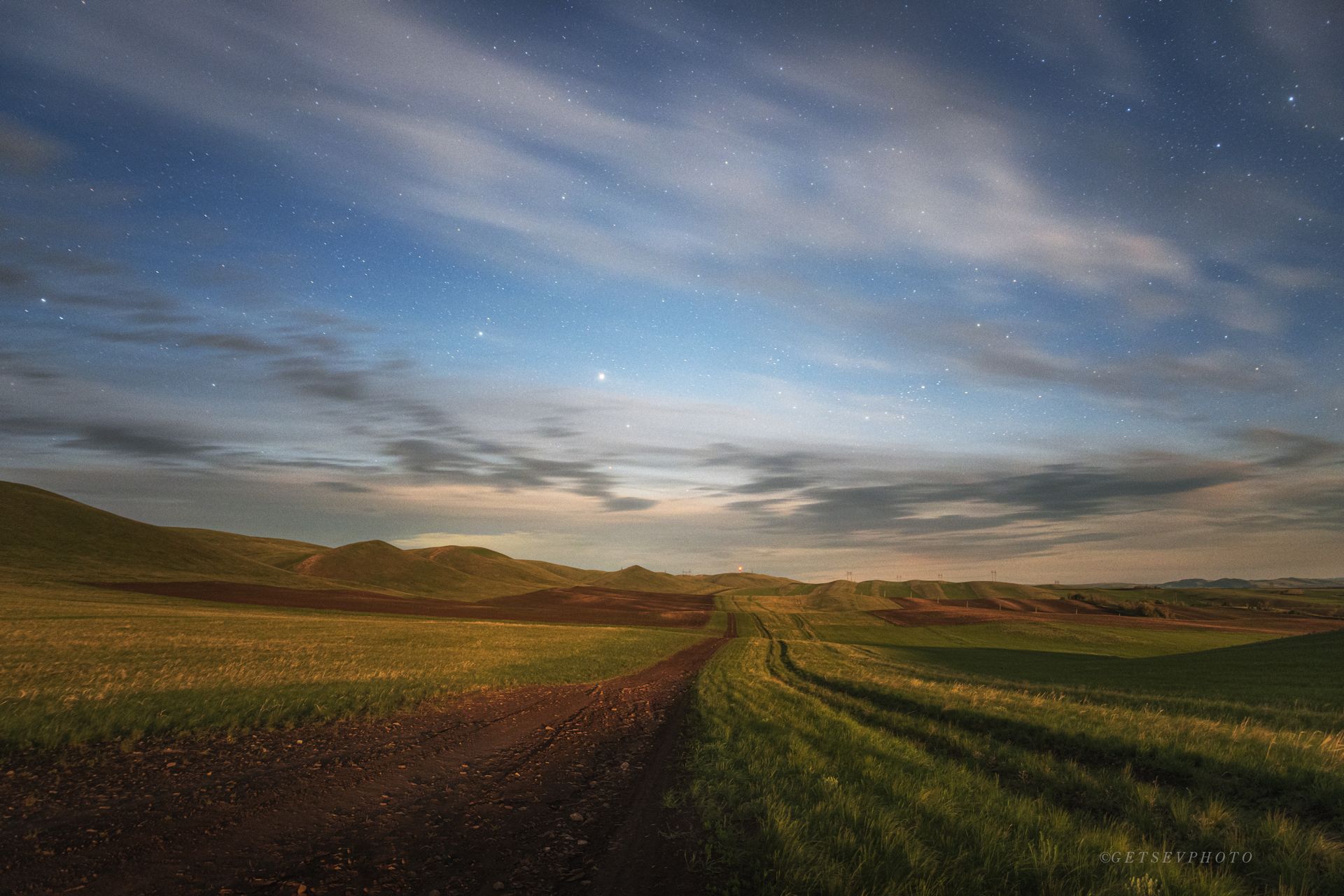 пейзаж, поле, горы, ночь, небо, звезды, Евгений Гецев