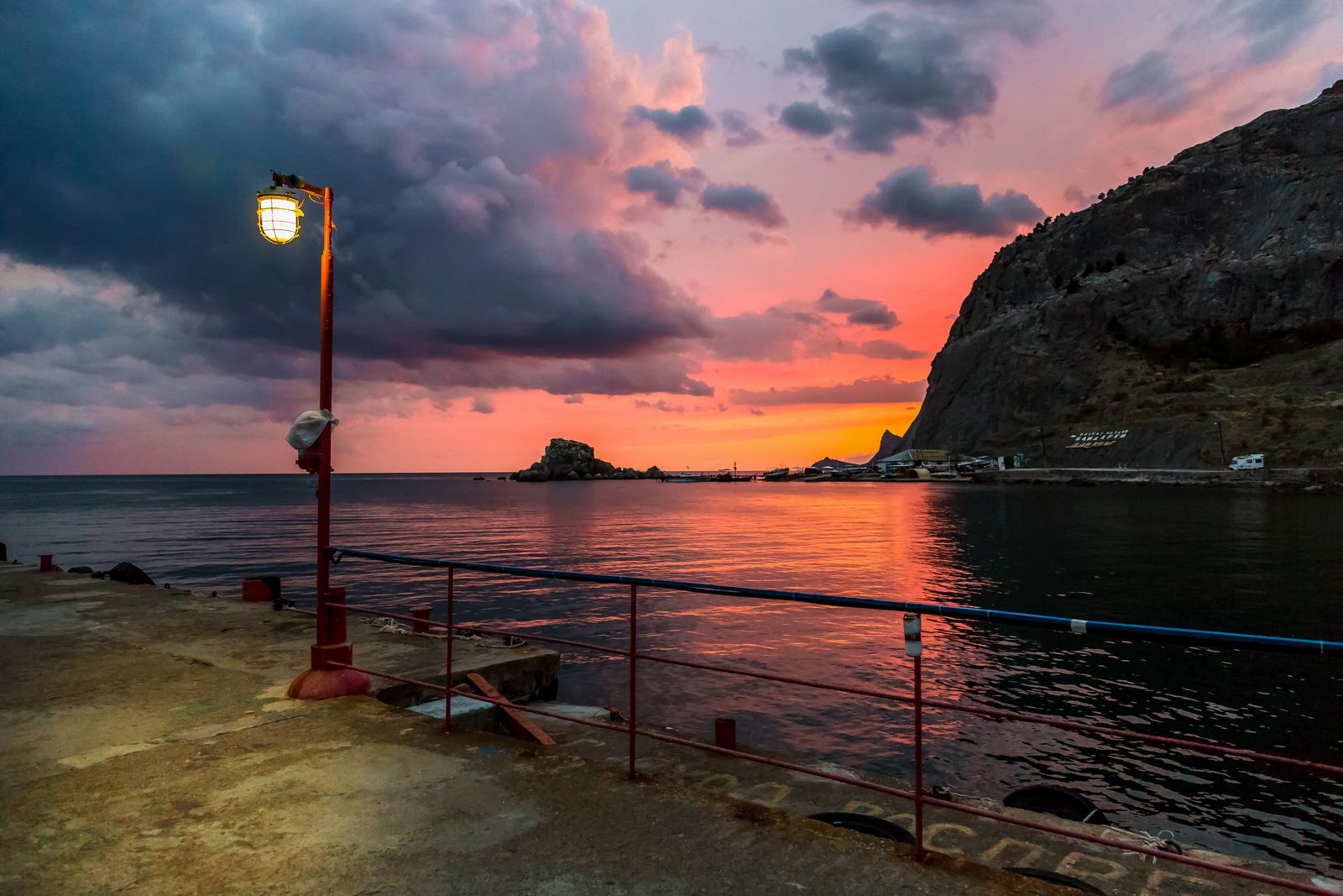 пристань, фонарь, море, Судак, Крым, вечер, закат , Юрий Морозов