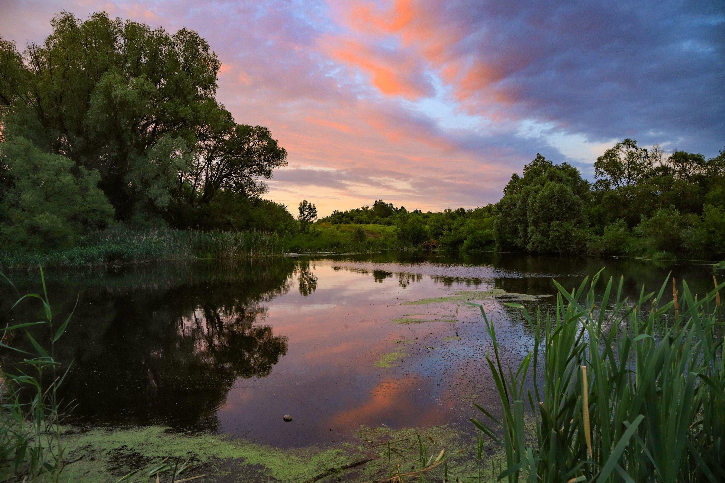 пруд, вечер, закат, пейзаж, Юрий Морозов