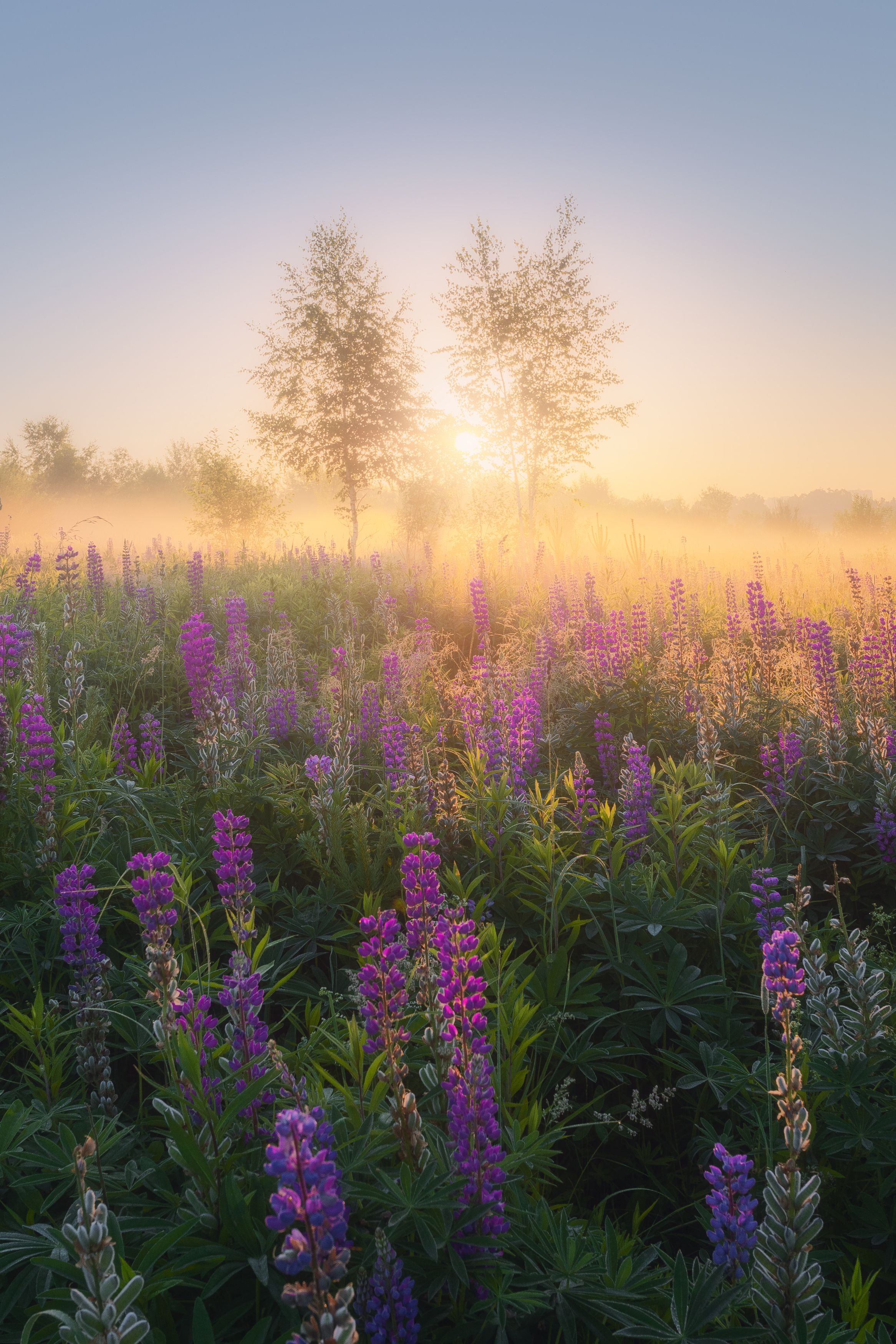 природа, рассвет, цветы, пейзаж, люпины, лето, Мартыненко Дмитрий