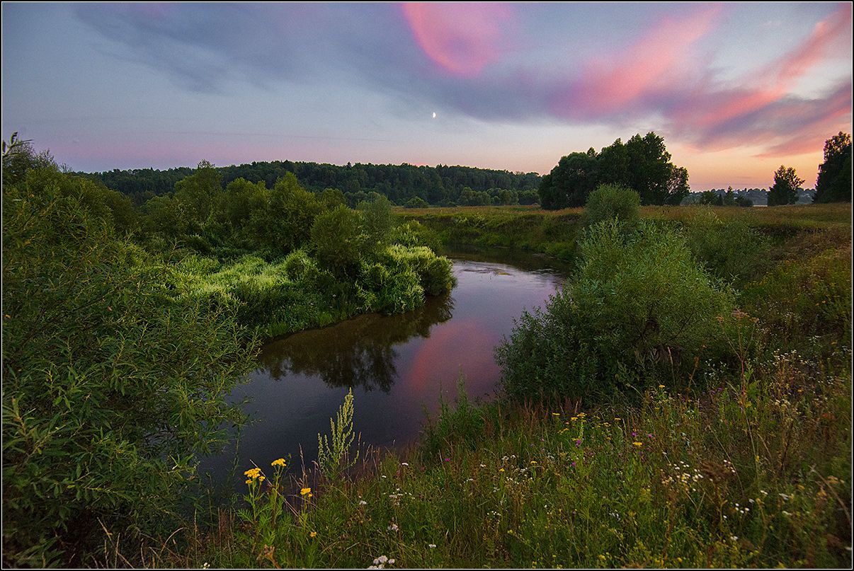 калужская обл. р.протва, вечер, луна, АНАТОЛИЙ ДОВЫДЕНКО
