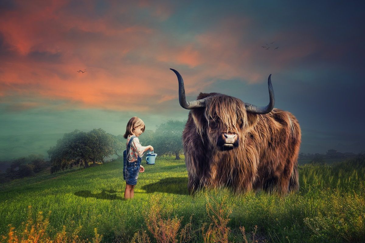 девочка, буйвол, Sergii Vidov