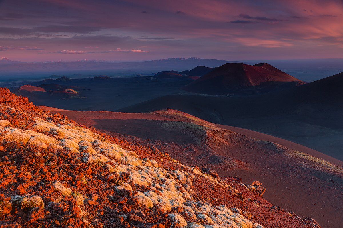 Словно на Марсе, можно почувствовать себя во время заката на плато вулкана Толбачик.