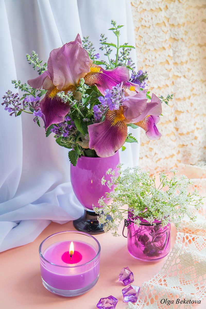 ирисы, свеча, натюрморт, Бекетова Ольга
