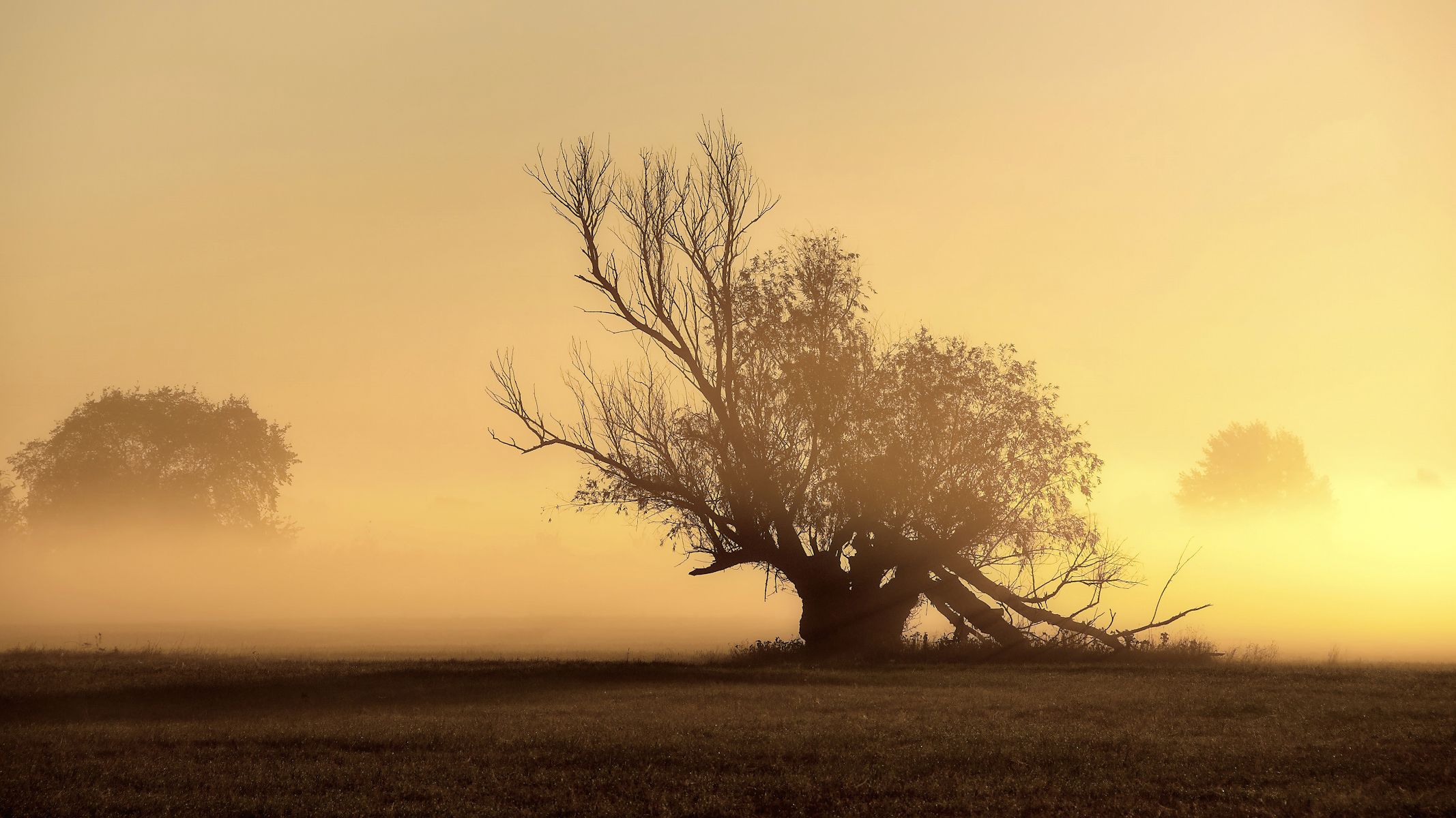 утро, восход, дерево, туман, силуэт, природа, Сергей Аникин