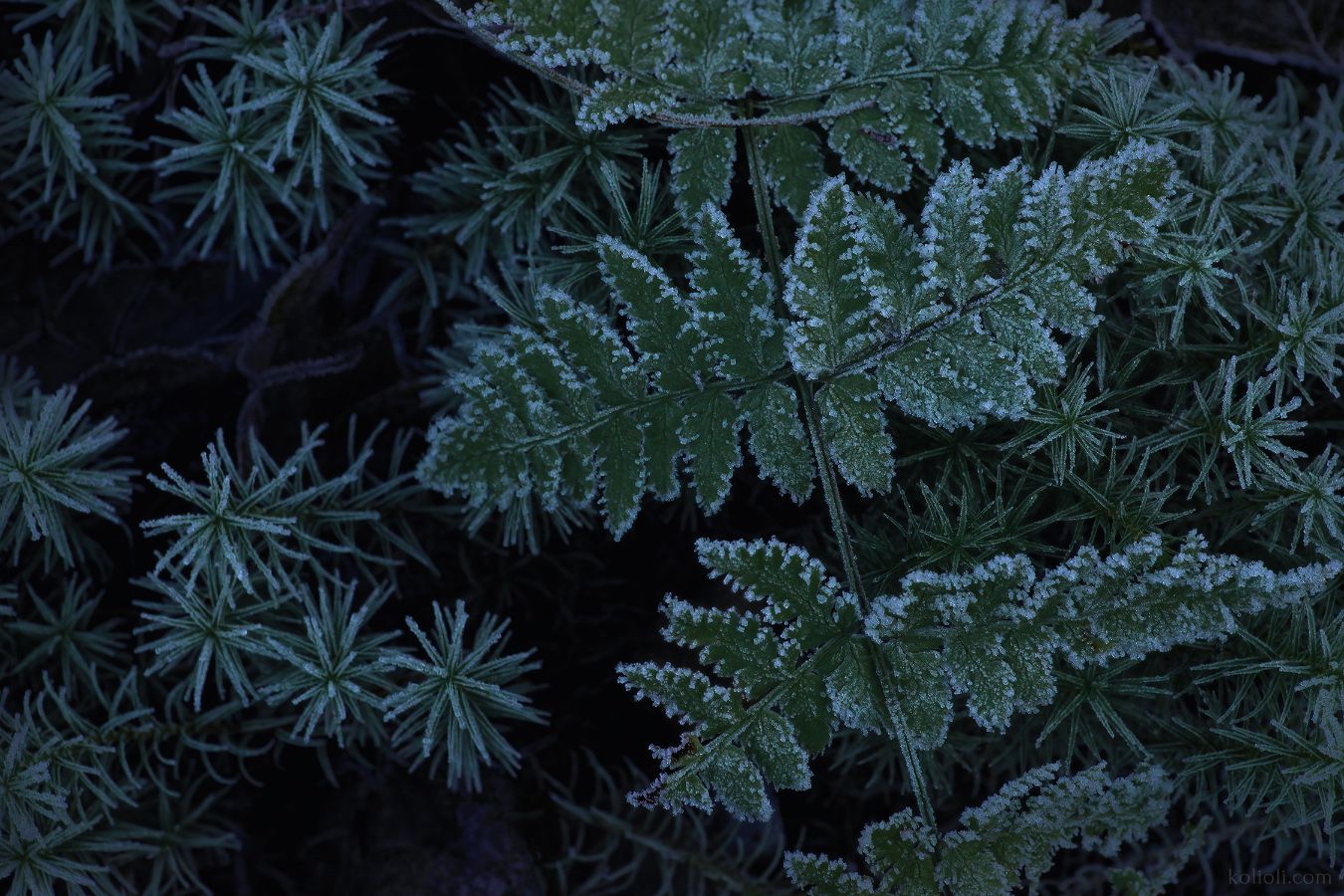Иней на лесных текстурах — папоротниках и мхах. В лесах Карельского перешейка. Октябрь 2022. kolioli.com | VK | Обучение