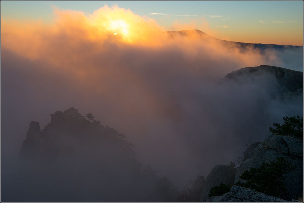 Крым, Осень, г.Демерджи, Чатырдаг, туман, солнце