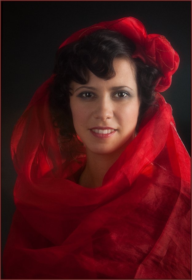 Хорошая работа в стиле 30-х, только я бы цвет убрал или сделал его не столь ярким, фон подсветил и шумы добавл. А моделе надо было таинственность изобразить в те годы Вера Холодная была эталоном для подражания.