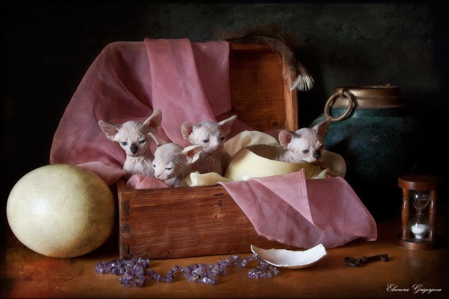 Сказка о том, как на нашей планете появились сфинксы. Конечно же, они вылупились из яиц последних сказочных драконов. И немножко похожи на своих волшебных прародичей, правда?))