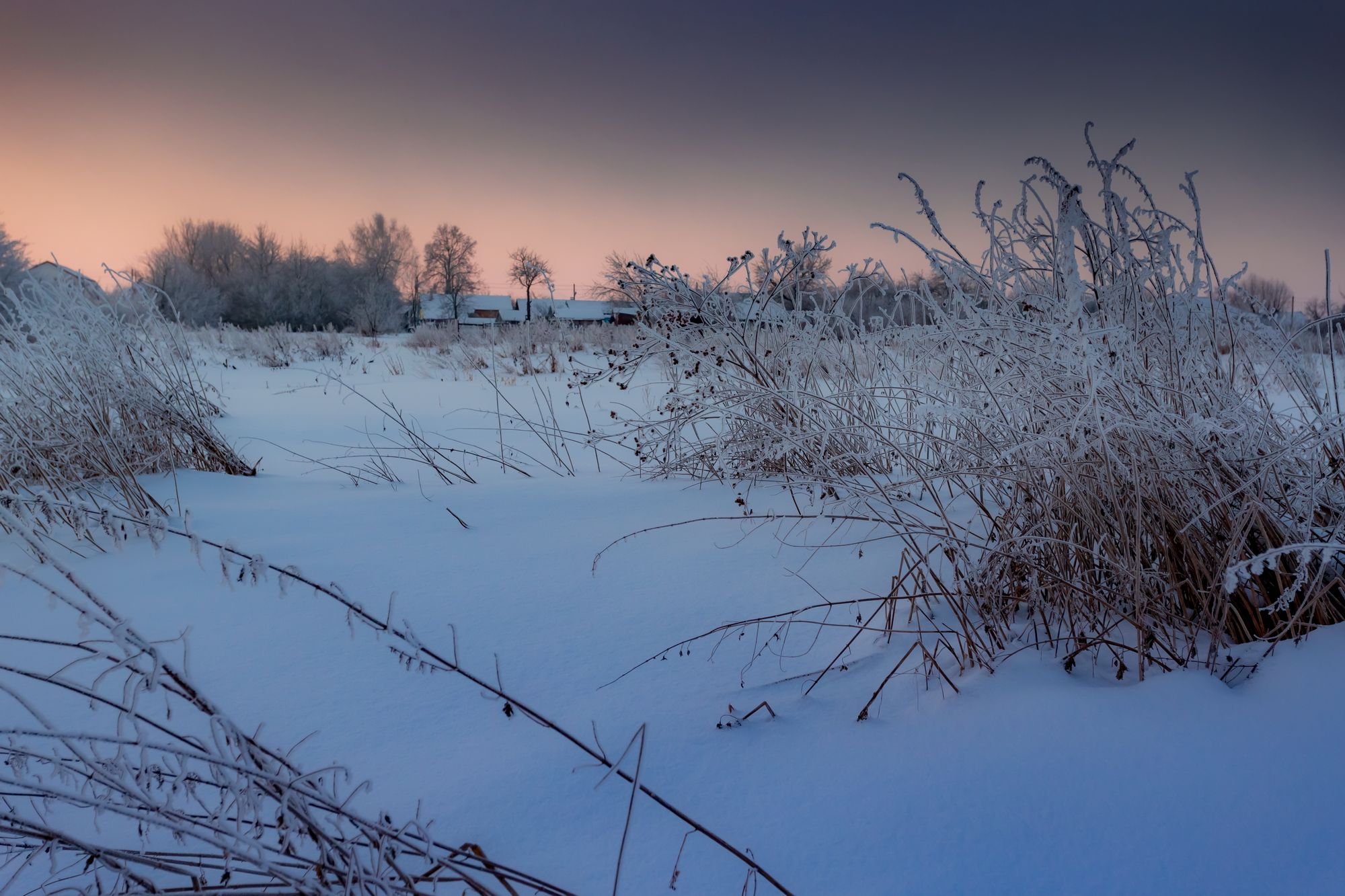 поле, зима, восход, деревня, пейзаж , Юрий Морозов