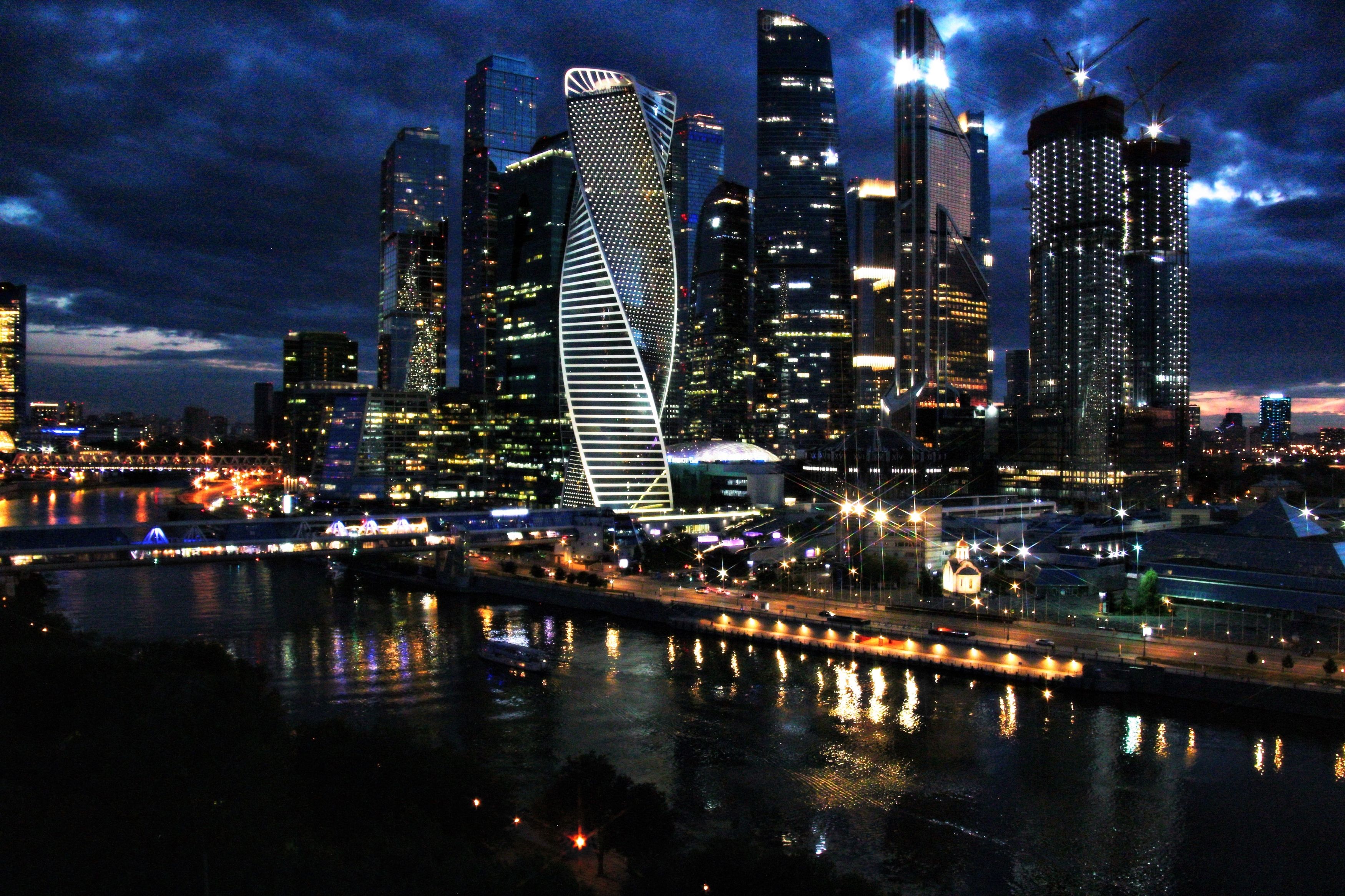 москва сити, небоскребы, река, вечер, огни, город, крыша, Ксения Орлова