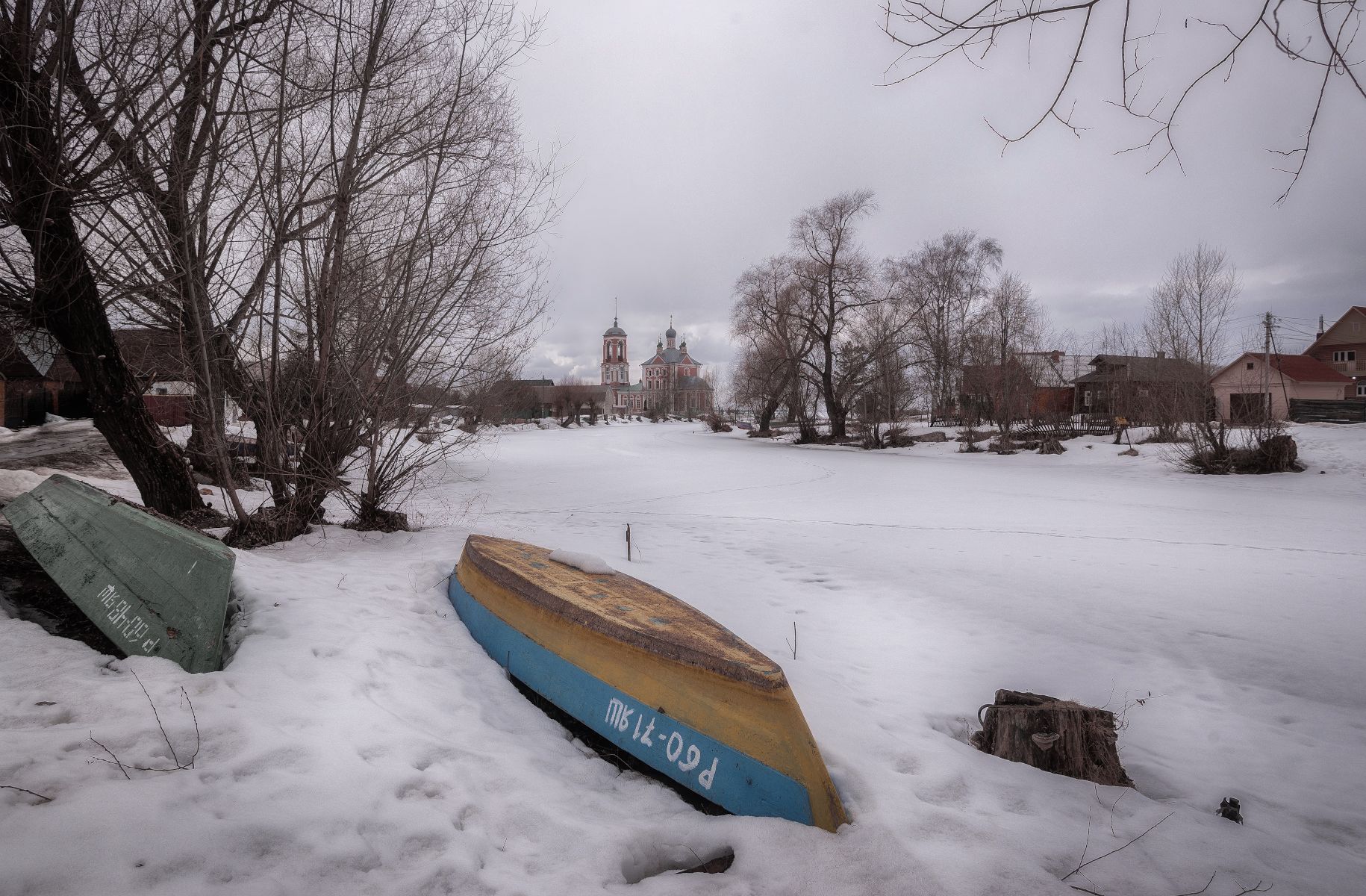 весна, март, река, лодки,пасмурно, Сергей Аникин