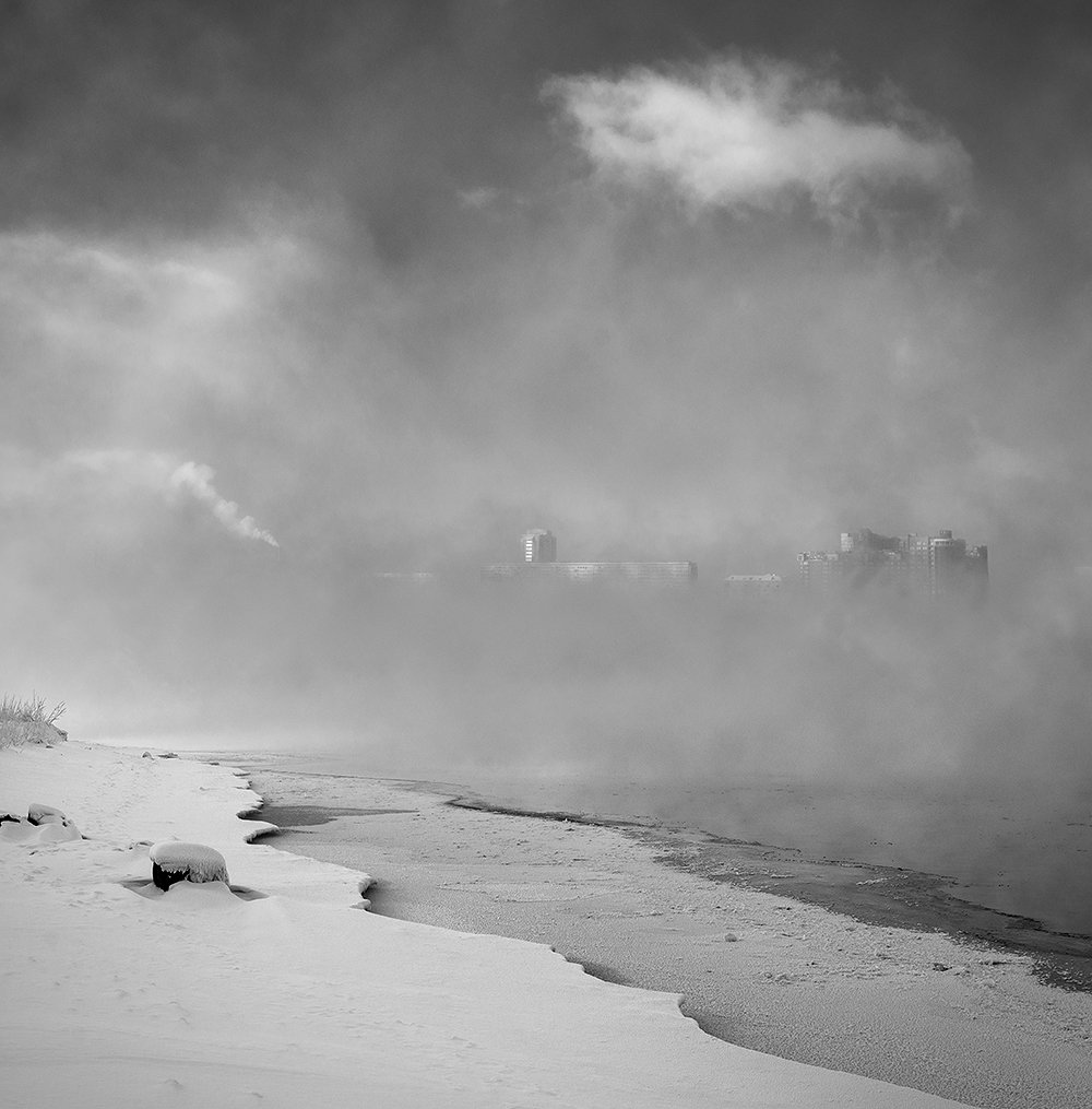 Из-за близкого расположения ГЭС в районе города Енисей не замерзает и в морозы над рекой стоит сильный туман.