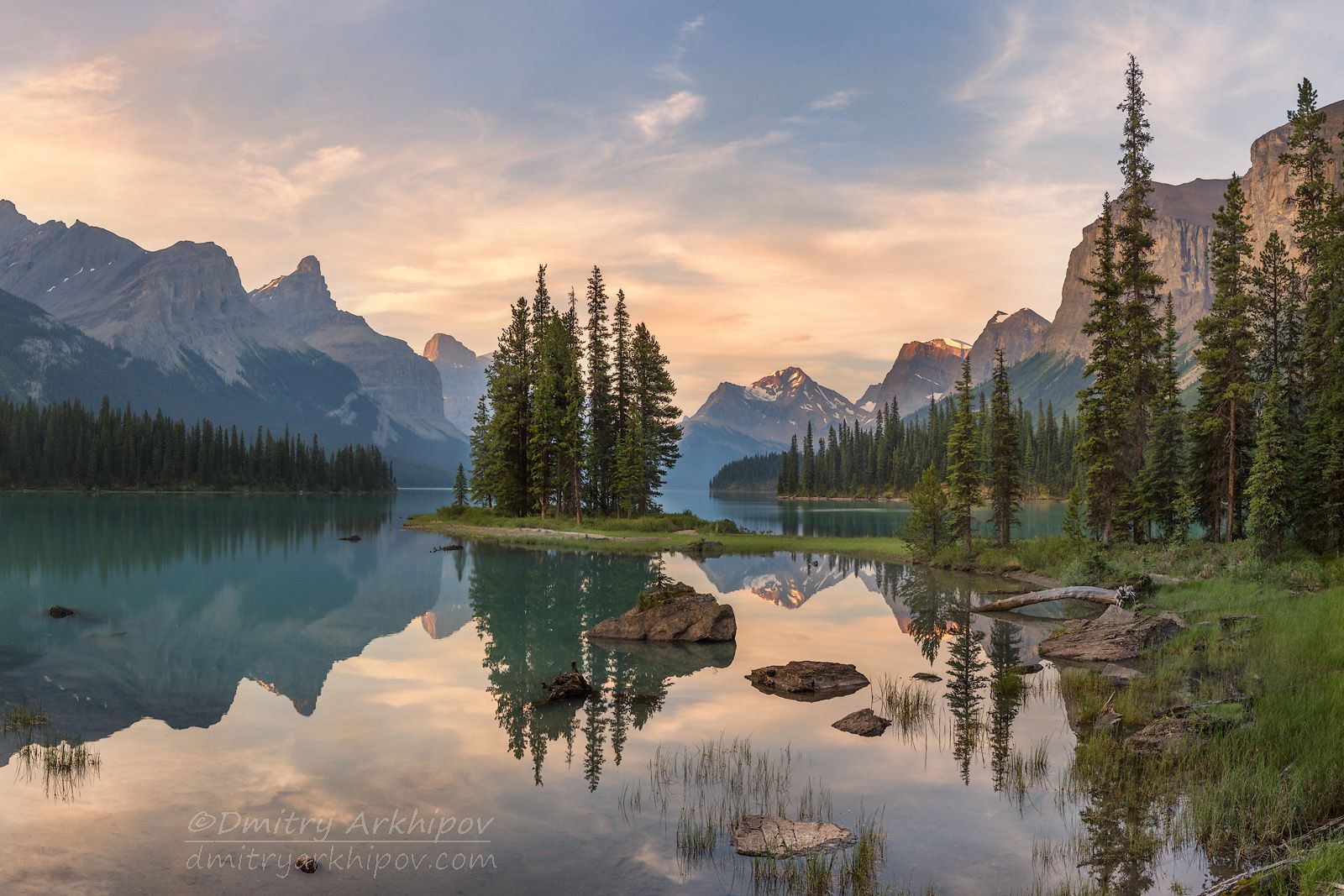 Снять Spirit Island я мечтал давно. Еще с тех пор, как над кроватью в офицерской общаге у меня висел поразительной красоты плакат, с удивительным горным озером и полуостровом на нем. Я тогда не знал где это находится, но картина символизировала для меня недостижимую красоту мест, куда вряд ли смогу попасть. Прошли годы, мир стал дружественнее и доступнее. Я узнал, что озеро находится в Канадских Скалистых горах и решил снять тот самый полуостров. Однако выяснилось что, что ни дорог, ни тропинок вдоль озера нет. На остров можно попасть лишь на катере, который курсирует днем и ни за какие коврижки не может доставить на рассвет или закат. Да и находится это место в национальном парке, на особо охраняемой территории. В итоге сложные переговоры с рейнджерами, 40 км на каяке по озеру, 3 дня одинокой жизни и съемок в тайге и мечта воплотилась.