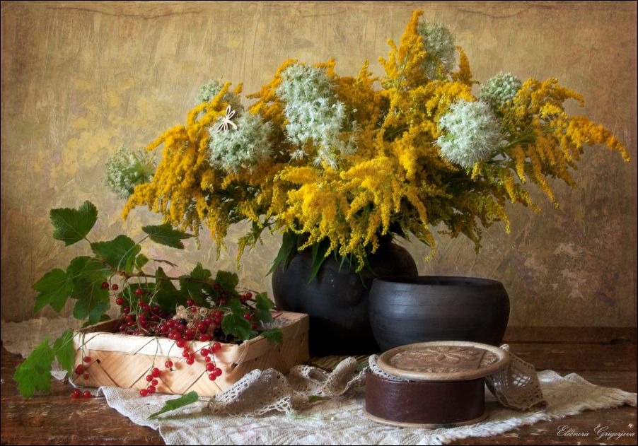 Летняя серия натюрмортов с чёрной керамикой латвийского автора Инги Перконс. В качестве фона на некоторых работах использованы картины этого же мастера.