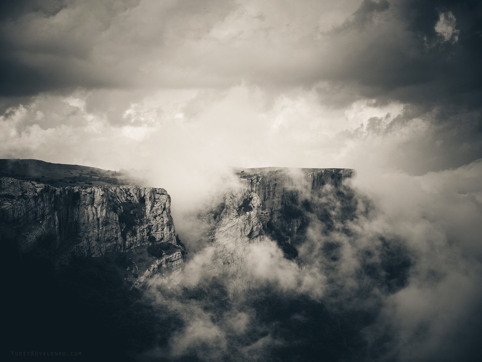 Горы, Крым, Облака, Свет, Скалы, Тучи, Ч/б, Юрий Коваленко
