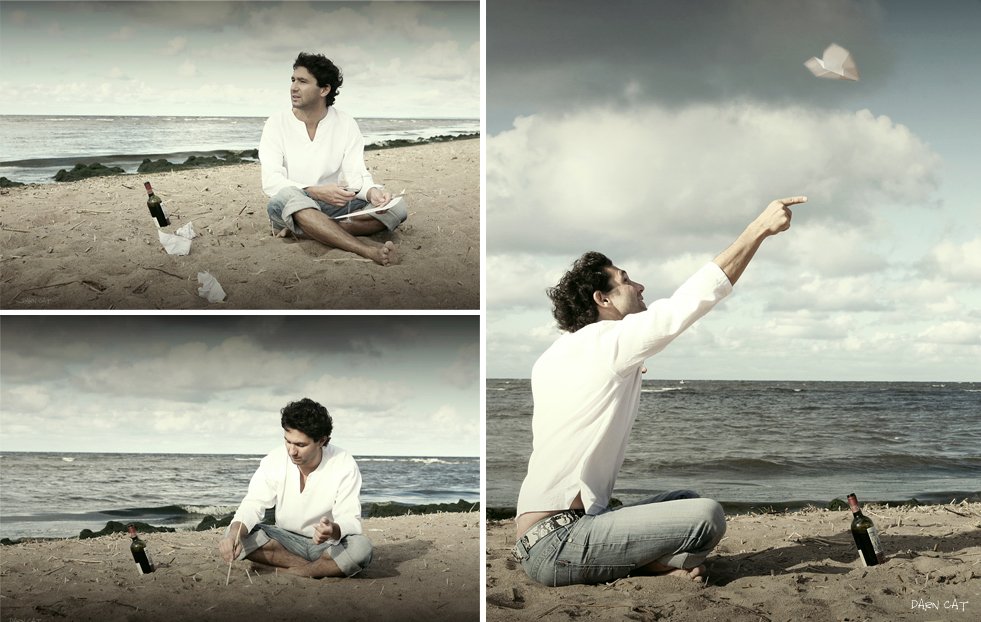 "герой-романтик оторвал свой зад с песка,и воодушевленный мечтой, пустил свой самолетик,