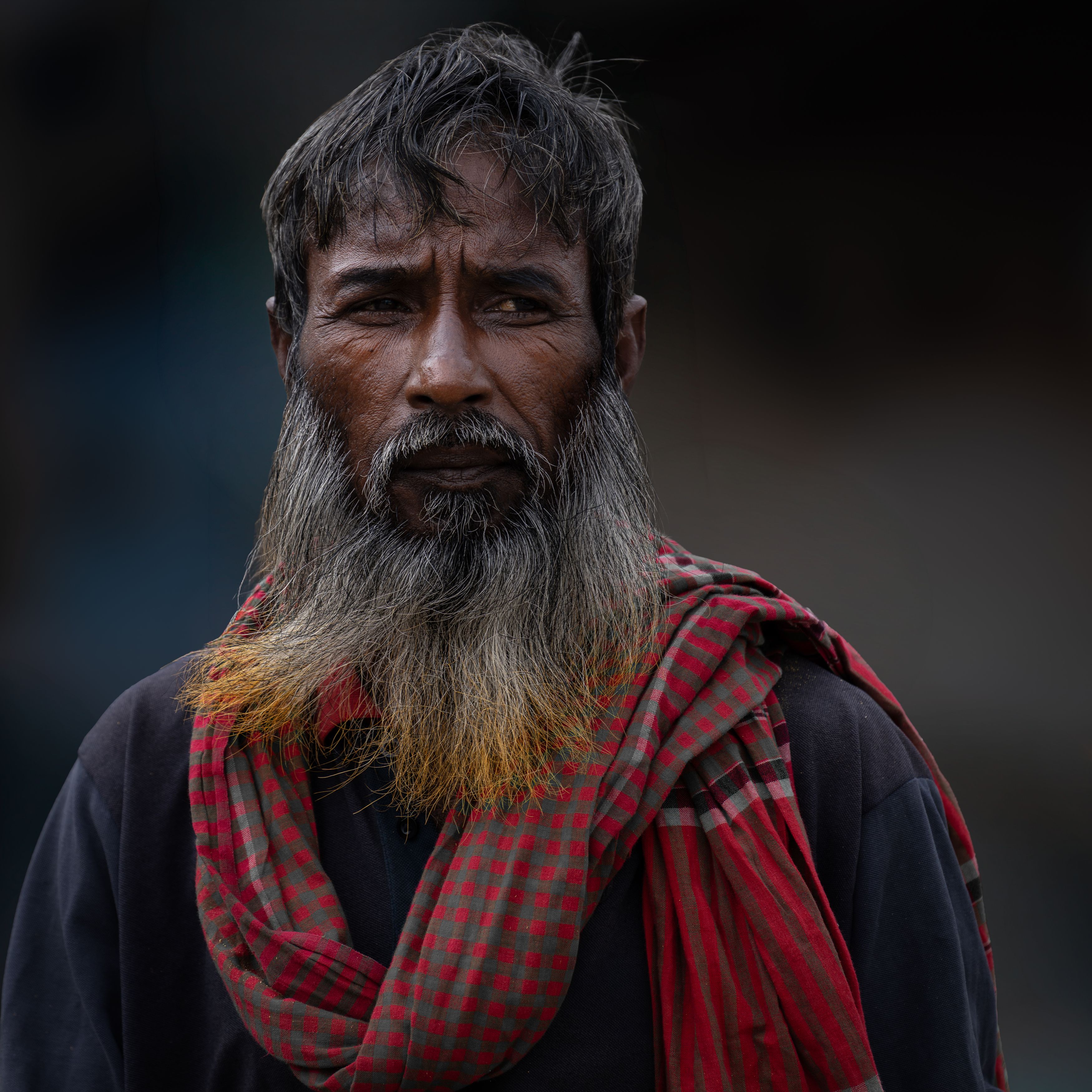 Mustafa, this is a solid character study. You've got great contrast here—the rough texture of the beard against that soft checkered scarf really draws the eye to his face. The lighting brings out the details in his eyes without washing them out.