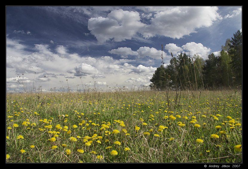 облака, лето, поле, небо, одуванчики, пейзаж, photohunter, Андрей Житков