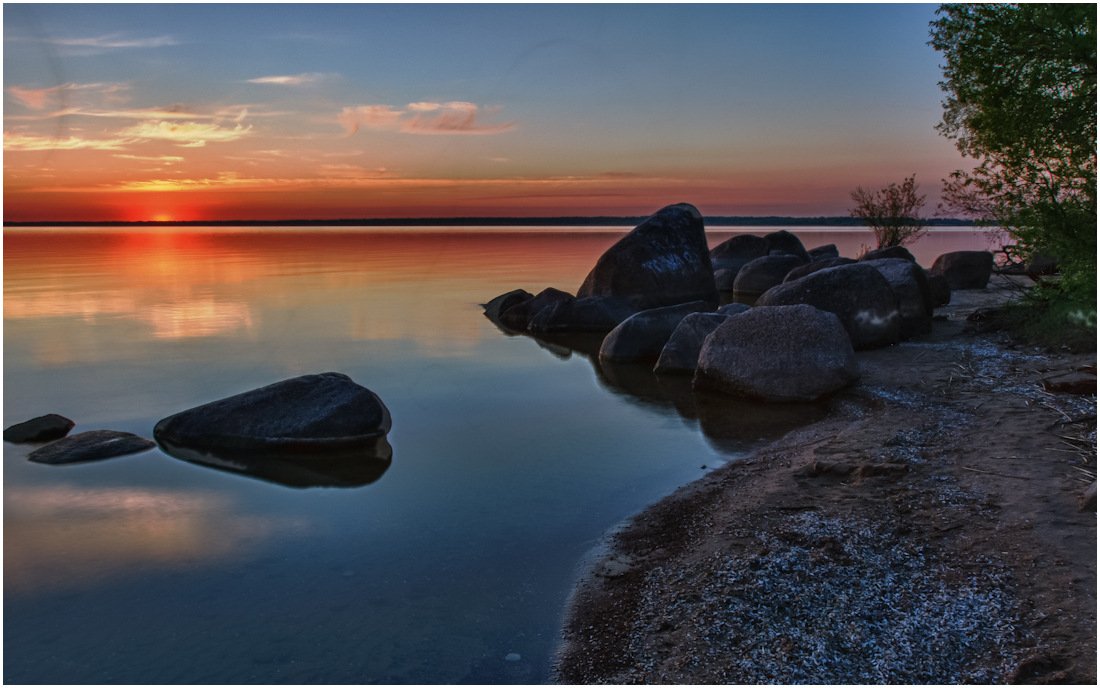 озеро, закат, камни, Sergey Navetny