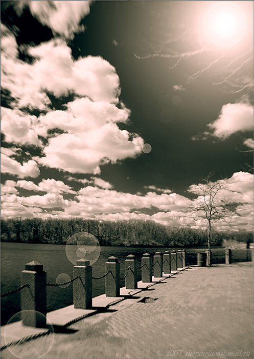 Справа группа играла, что-то блюзовое. Из зрителей было только озеро. 760 nm инфракрасный фильтр, штатив с внешним пультом. Штатный объектив с широкоугольной 0,5х насадкой Sigma. К сожалению насадка сильно смягчает изображение, особенно по углам.