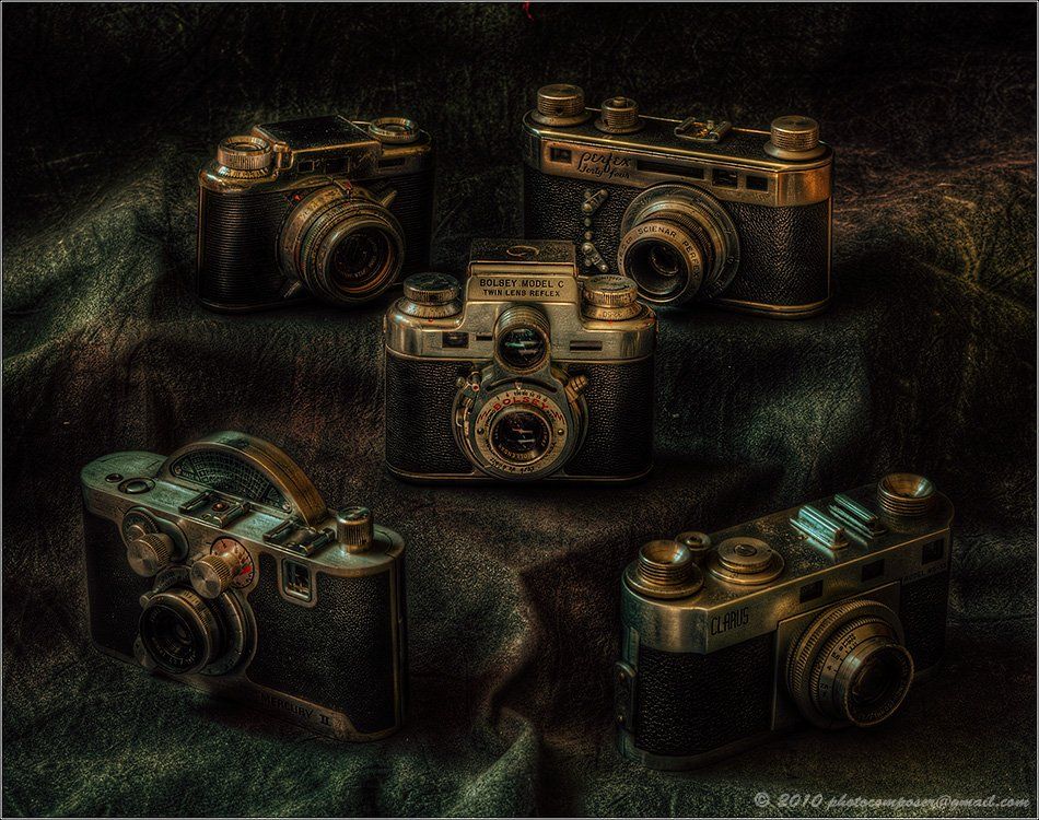 Американцы потерпели полное фиаско с выпуском люксовых камер (Detrola, Kodak Ektra...), но имели колоссальный успех на массовом рынке недорогих фотоаппаратов. Причем надо отметить, для этого им совершенно не надо было выходить на внешний рынок. Все продавалаось в пределах США, порой миллионными тиражами. Ситуация очень похожая на СССР. Даже культура изготовления американских камер во многом напоминает советские. В большинстве своем они достаточно грубо сделаны внешне, но на мой взгляд в целом более надежны. Главным же отличием американских камер в отличие от советских и любых других в мире – совершенно уникльный дизайн, что явственно видно на приведенном снимке. Слева внизу – Mercury II (Model CX) компаниии Universal, с уникальным роторным затвором. Universal была самой успешной в мире в 30-х годах, но разорилась буквально в одночасье в начале Второй Мировой войны, т.к. камеры ее в основно основывались на пленке, производимой в Бельгии, поставки которой естественно прекратились. Слева вверху Bolsey Jubilee в центре Bolsey C, творения великого швейцарского дизайнера фотокамер Jacob Bolsey, эмигрировавшего в США. Особенно примечательна Bolsey C – одна из немногих TLR самер для 35 мм пленки. Справа соответственно Perfex 44 и Clarus MS-35, должные составить конкуренцию Лейке хотя весьма отдаленно напоминавшие ее.