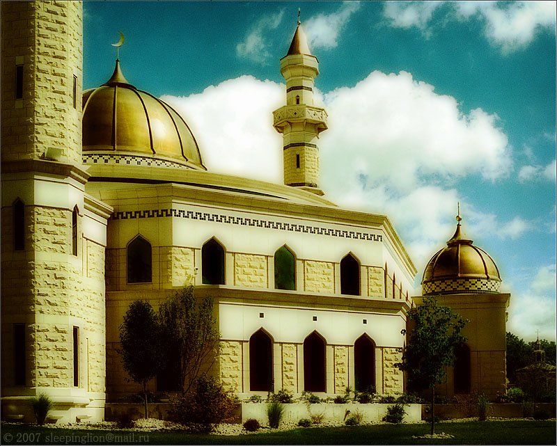 Dearborn, MI. Любопытное место. В ряд, вдоль дороги стоят несколько храмов различных направлений христианской религии и мечеть. Среднеформатная камера Bronica ETR, объектив Zenzanon MC 75mm f2.8. Слайд-пленка Kodak Ektachrome E200. Cross-Processing (проявлена процессом С41 как негативная вместо Е9)