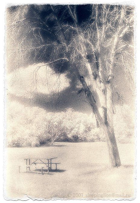 ...living on my own... /Freddie Mercury/ Инфракрасная пленка 35 мм Kodak Professional HIE. Снято: механическая зеркалка Vivitar V2000 со штатным объективом 35-70 мм F/3.5-4.5 и широкоугольной насадкой 0.8X Olympus B-28. Фильтр: Vivitar №25 Red. Экспозиция: при ярком солнце на глаз где-то выдержка 125, диафрагма 11. Проявка: в ванной комнате (нигде не берутся) Раздельное тонироание в ФШ.