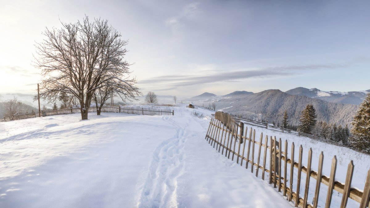 карпаты, горы, зима, снег, пейзаж, природа, панорама, дерево, вечер, украина, Piligrim