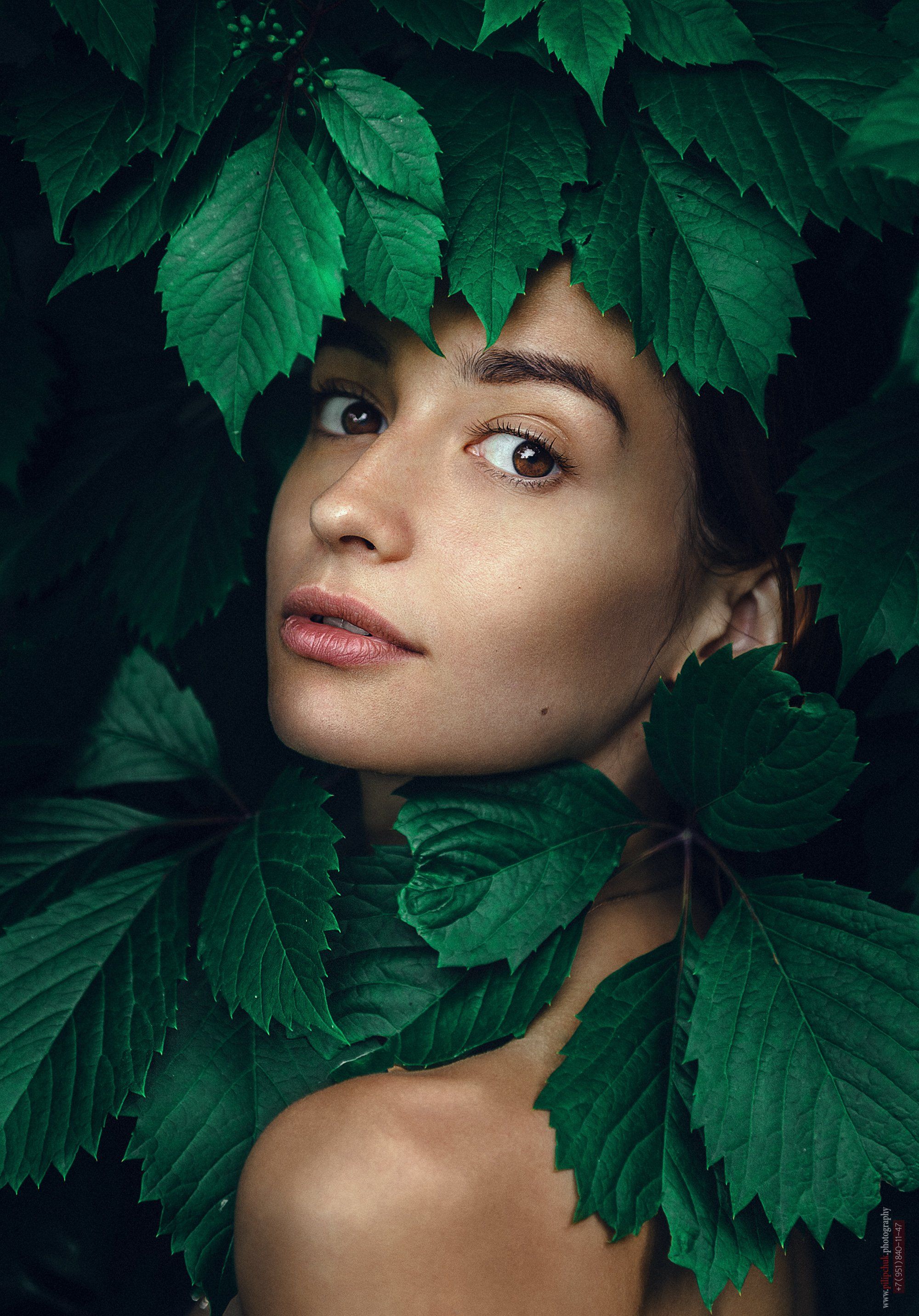девушка, портрет, фото девушки, девушка в листве, взгляд девушки, Пилипчук Константин