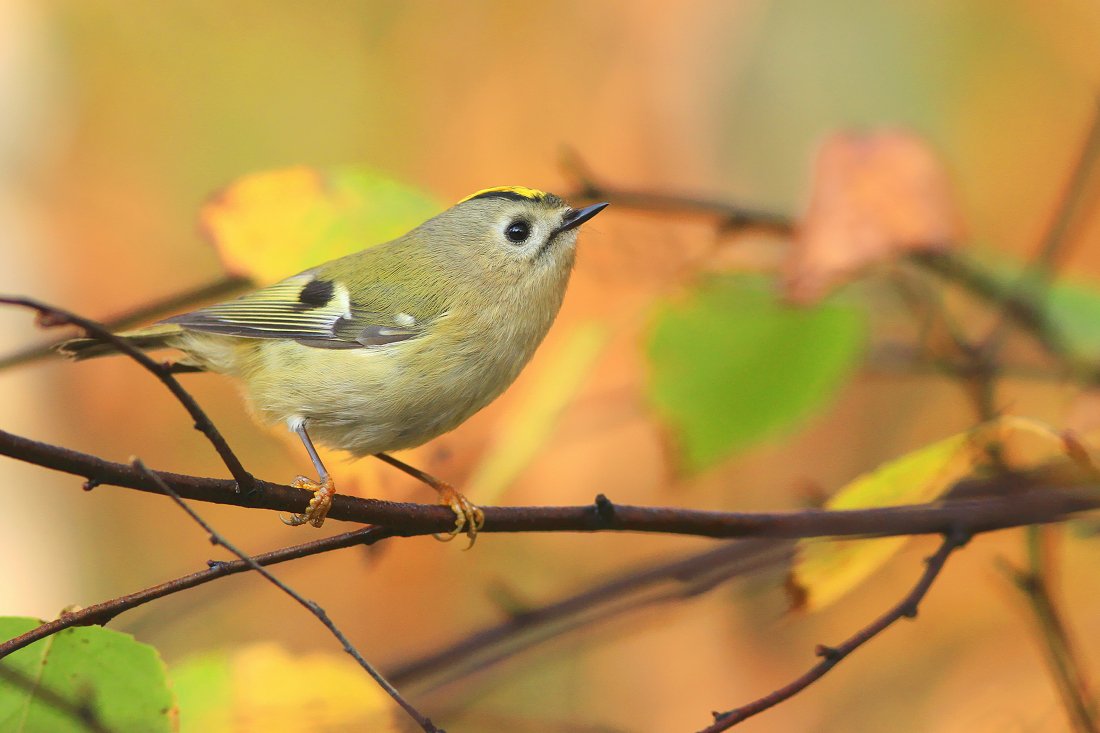 This photograph shows a goldcrest - the smallest species of european bird. Despite its size, the goldcrest makes its appearance in many legends and fairy tales as "the king of all birds". It has even yellow feathery crown on its head!