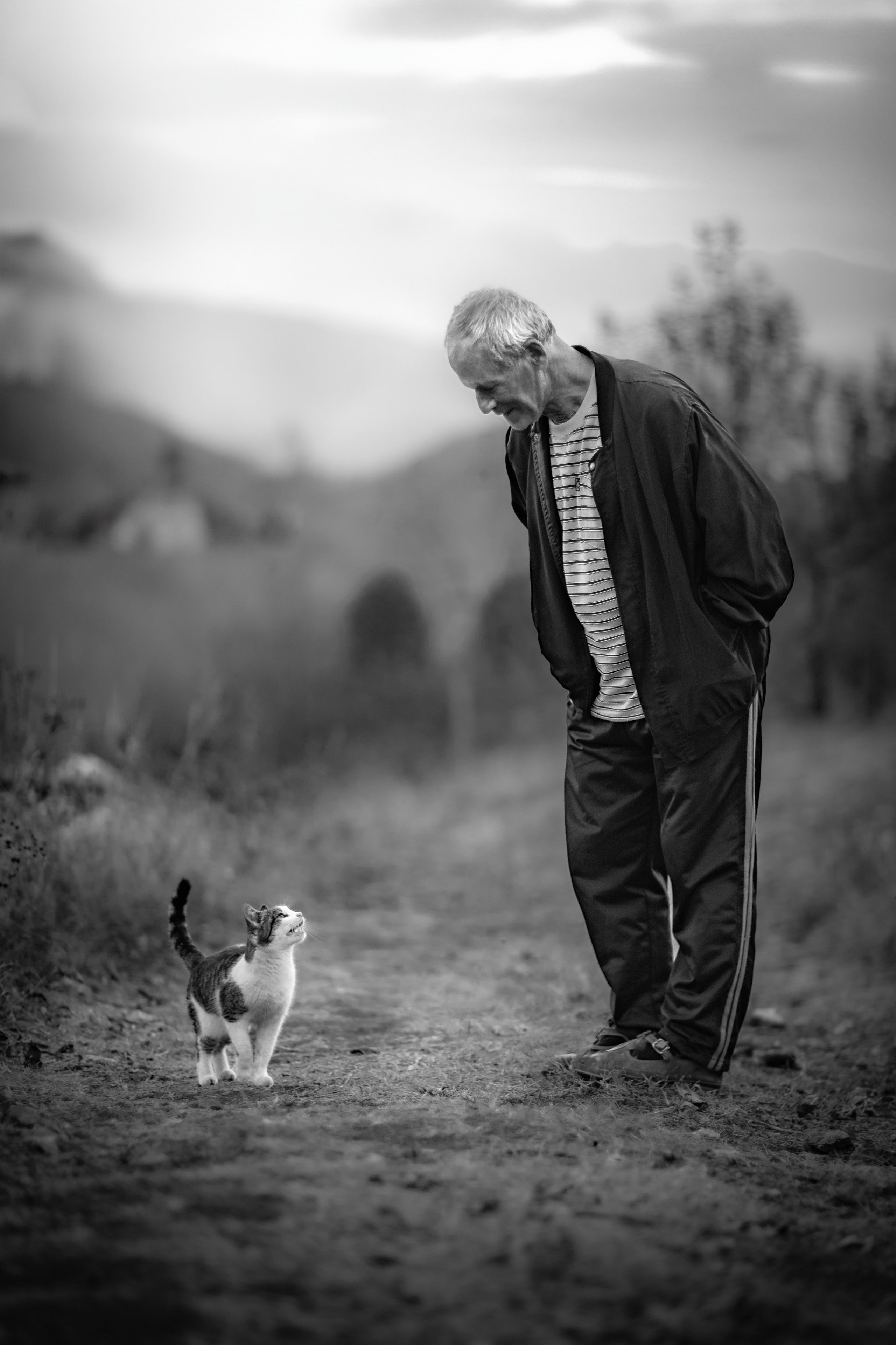 Кот, животное, старик, дерево, природа, Пенов Пламен