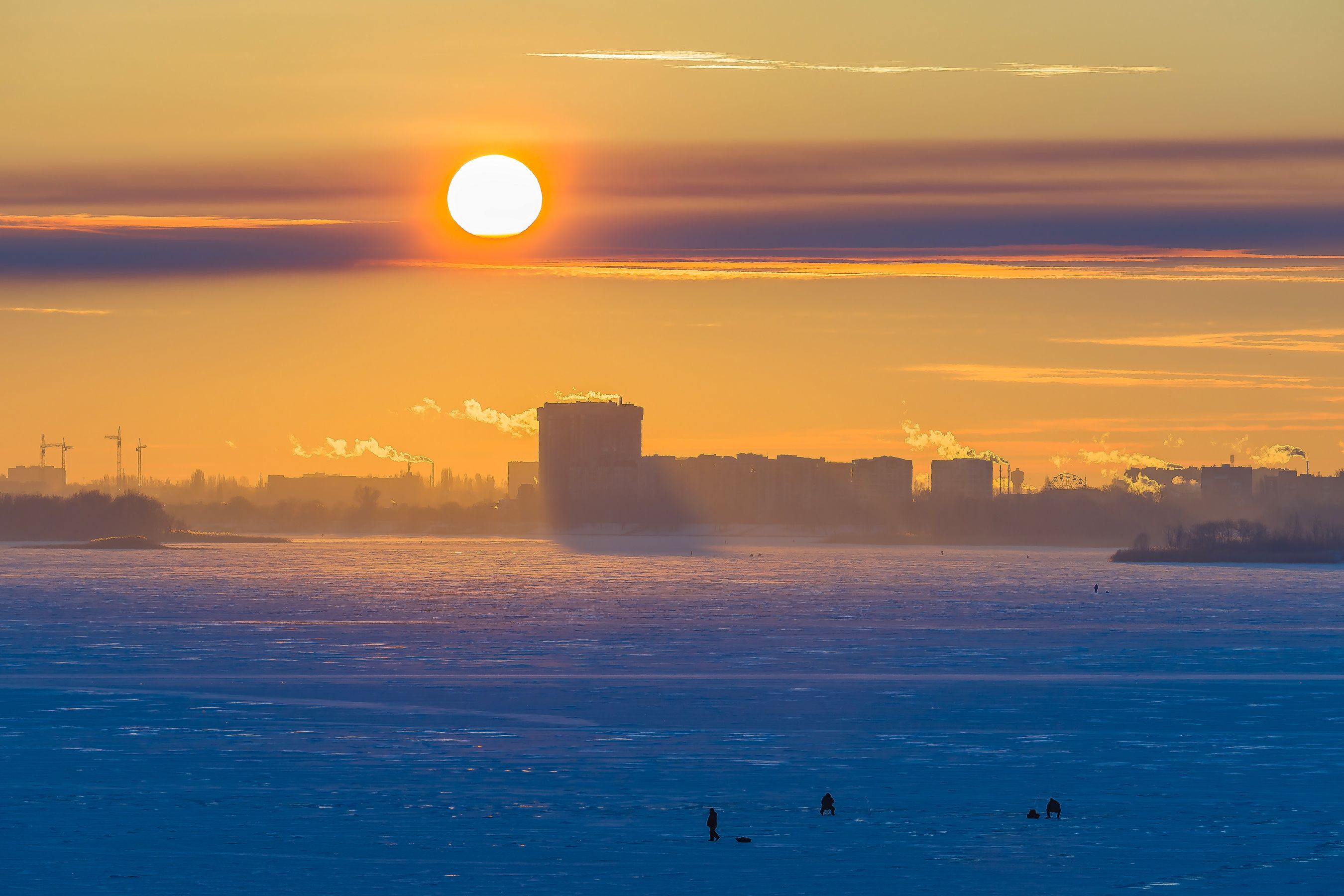 рассвет, саратов, энгельс, рыбалка, волга, рыбаки, лед, солнце, Подосинников Максим