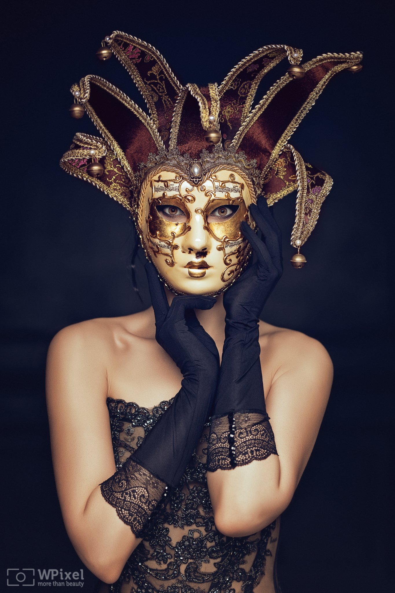 portrait women eyes brunette mask, Wojtek Polaczkiewicz