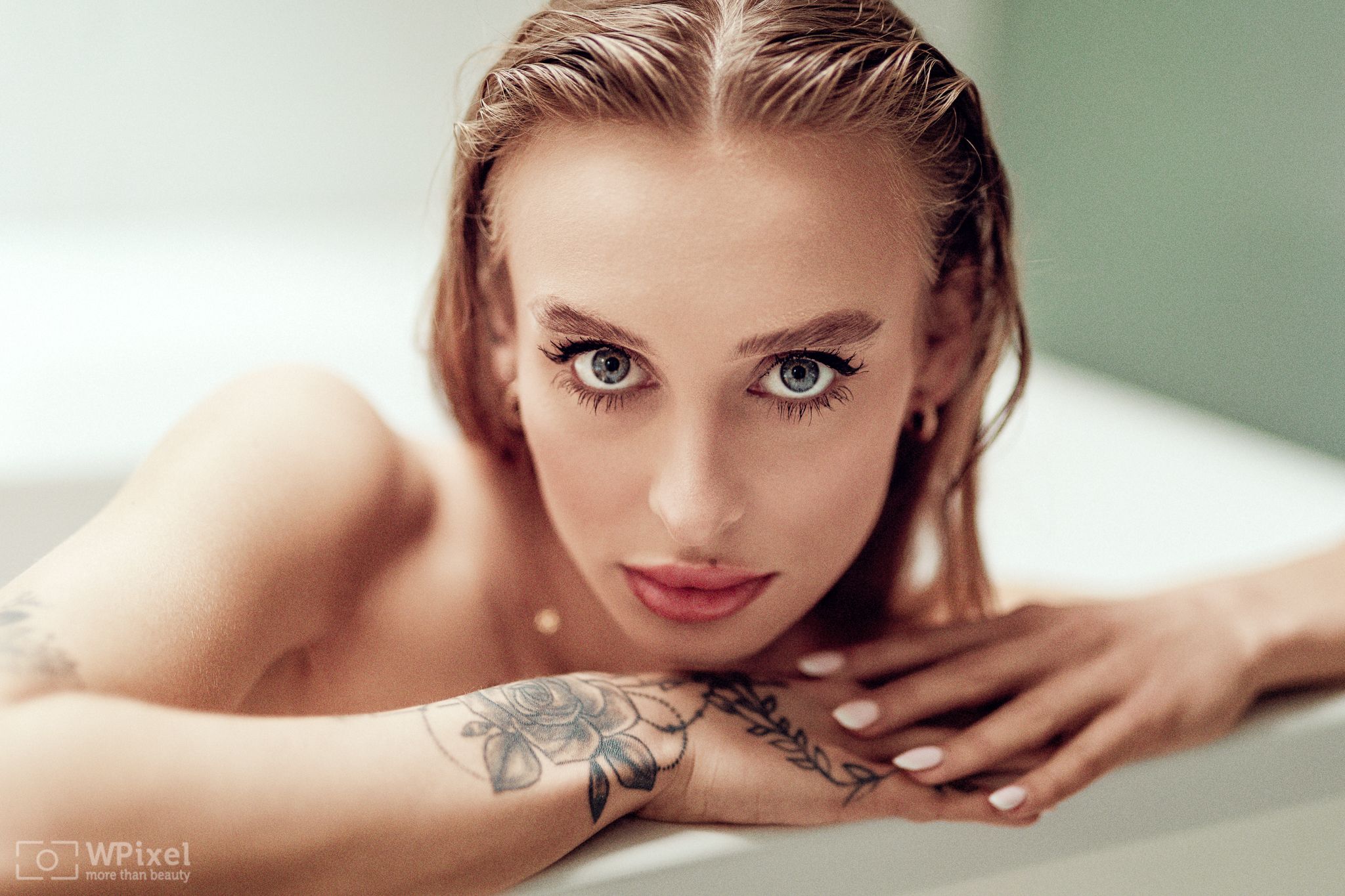 portrait, women, blonde, eyes, Wojtek Polaczkiewicz
