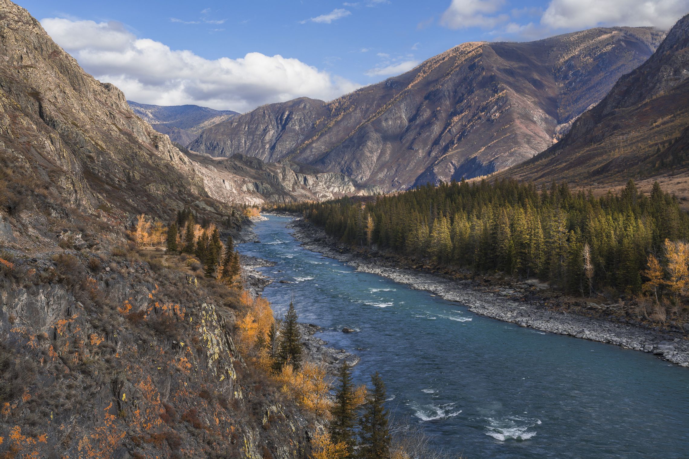 россия, горный алтай, река катунь, осень, осенние краски, цвет реки, Андрей Поляков