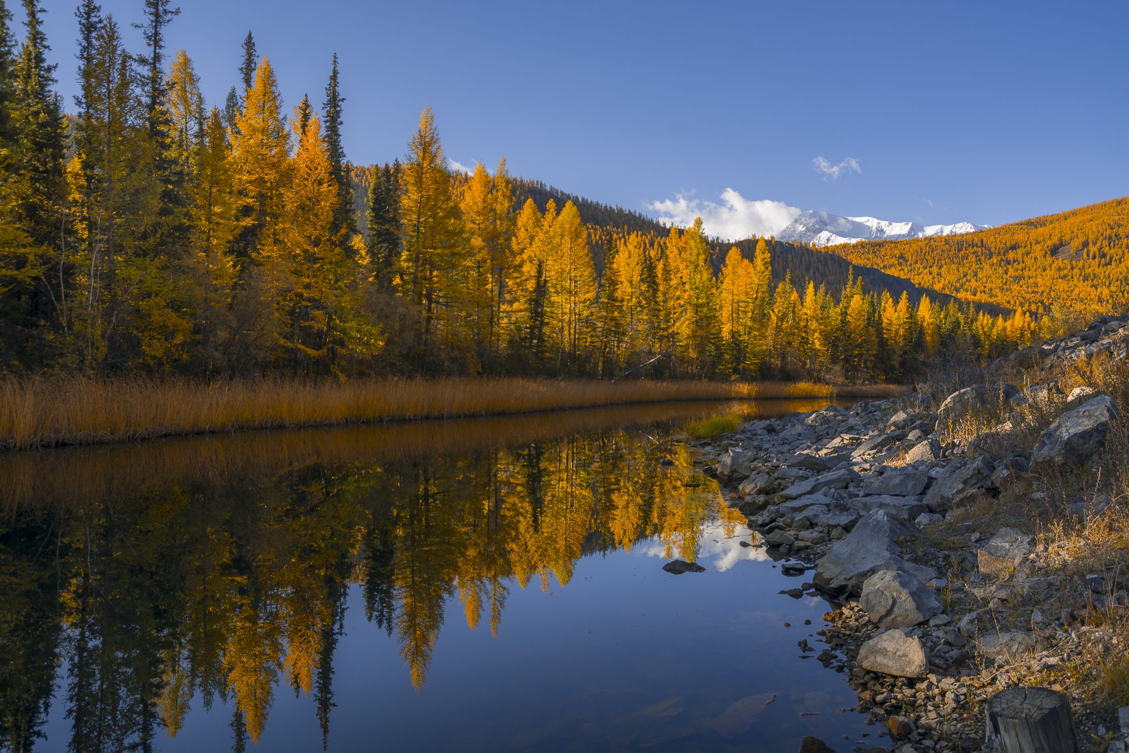 россия, горный алтай,ста́рица, староре́чье, курья́, поло́й,отражение, осень, утро, Андрей Поляков