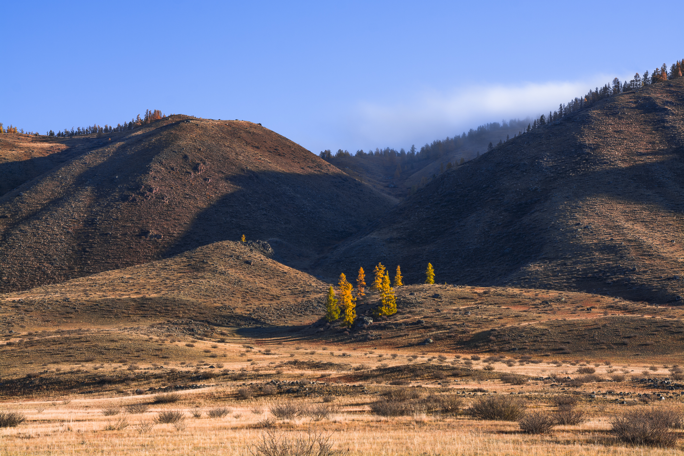 россия, горный алтай,осень,утро, свет, светотени, лиственницы, Андрей Поляков