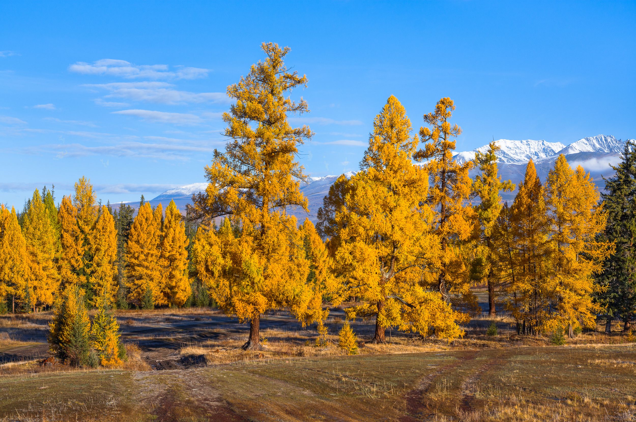 россия, горный алтай, лиственницы, осень, утро, Андрей Поляков