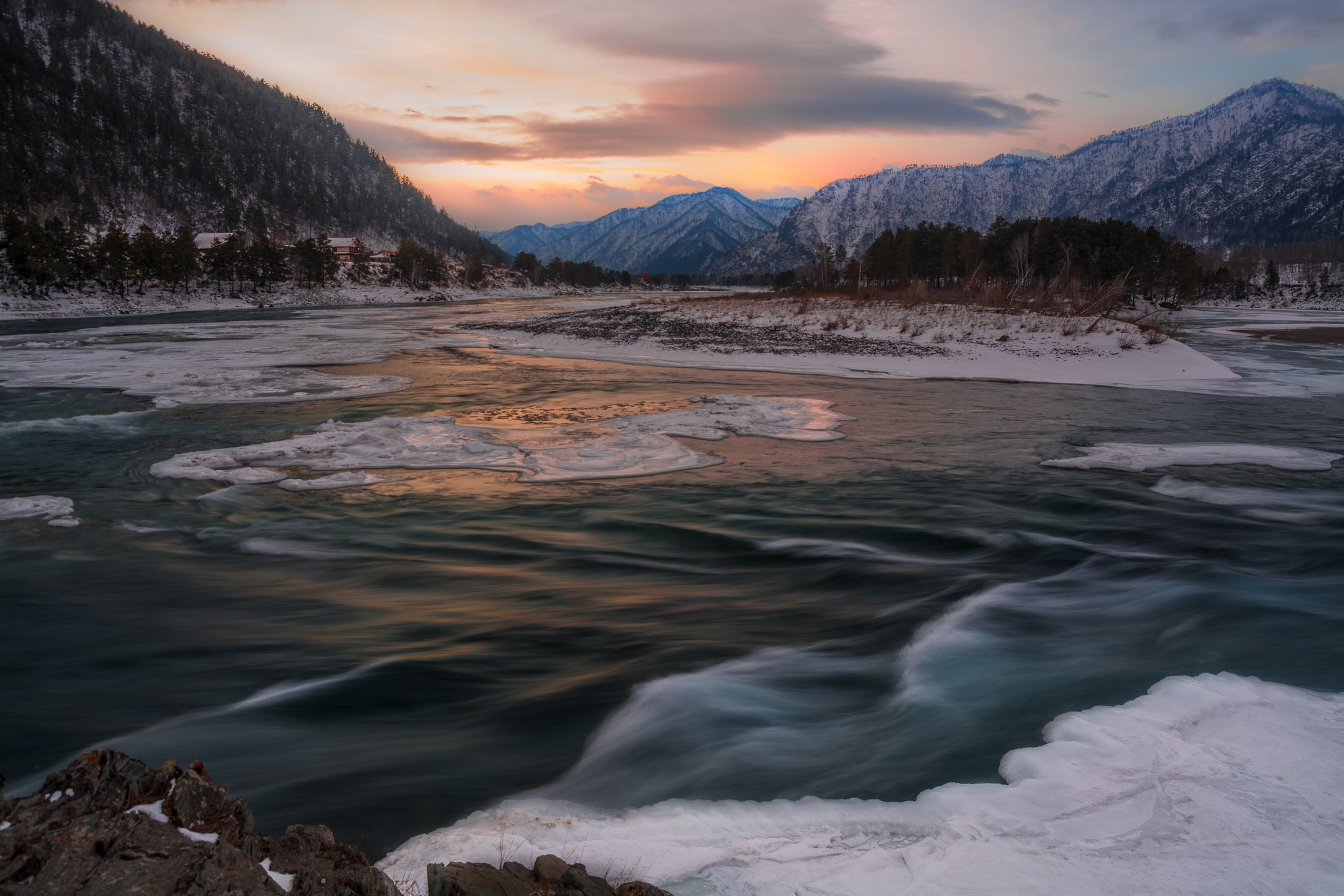россия, горный алтай, река катунь, зима, утро, Андрей Поляков