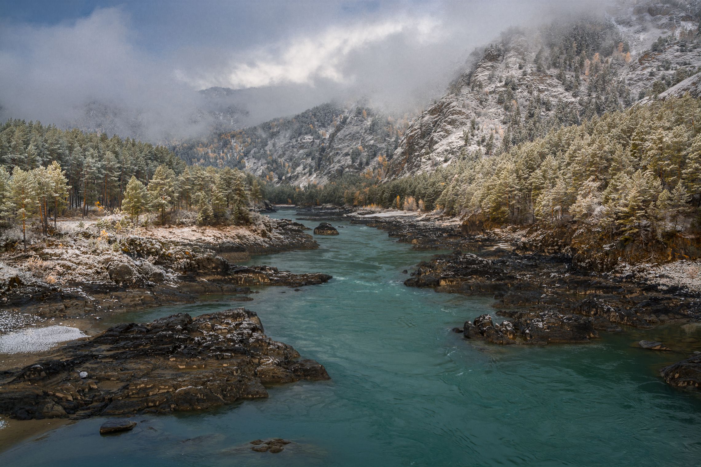 россия, горный алтай, река катунь, туман, утро,осень, Андрей Поляков