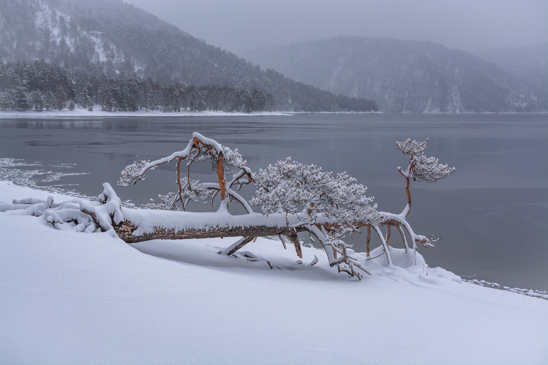 россия, горный алтай, озеро,сосна,зима, Андрей Поляков