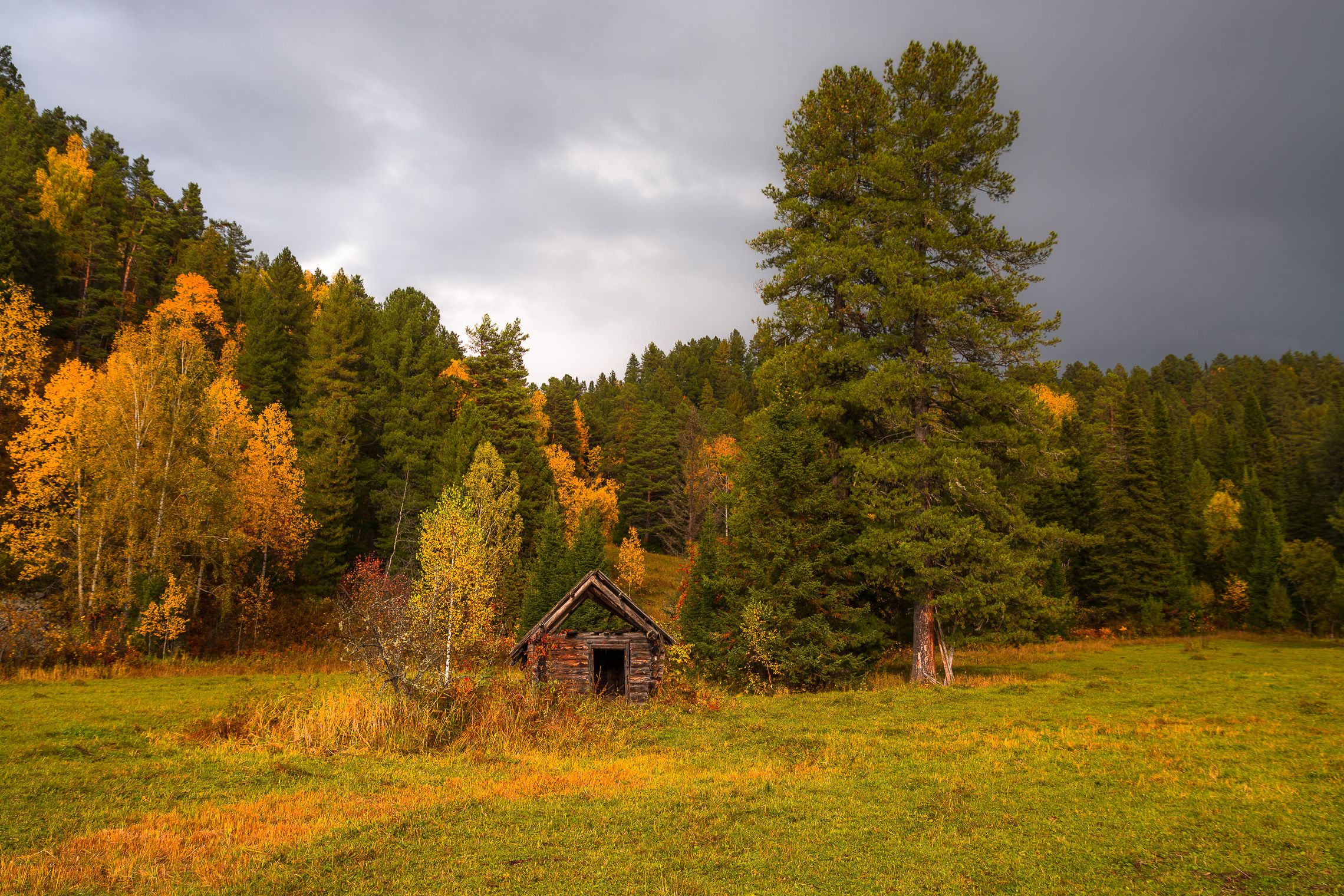 россиягорный алтайосеньмелкий дождикзаброшенная избушка