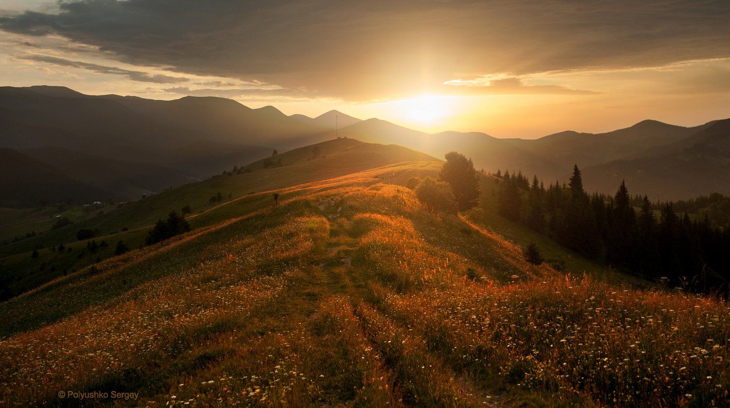 Горы, Дземброня, Закат, Карпаты, Косарище, Пейзаж, Солнце, Украина, Полюшко Сергей