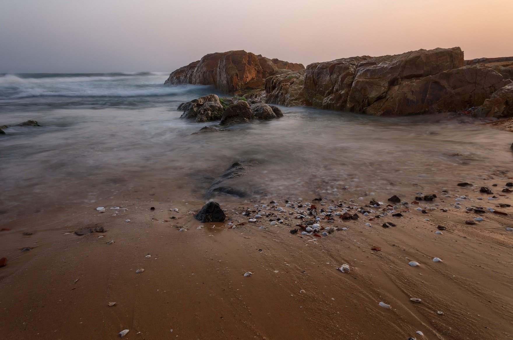 берег, пляж, камни, волна, скалы, вечер, закат, Павел Попов